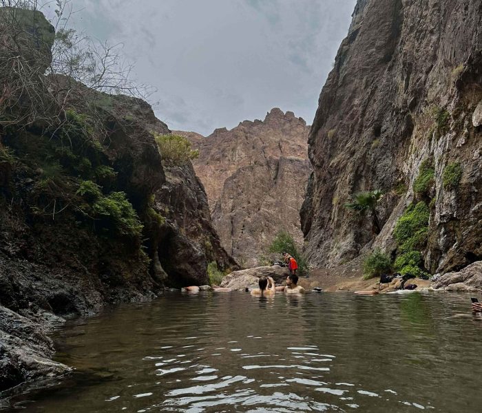 Located near the historical Hoover Damn, you’ll trek through desert landscape in a beautiful volcanic area. Finding yourself walking through slot canyons as you make your way to a natural geothermal hot spring located just a few hundred feet from the Colorado River.